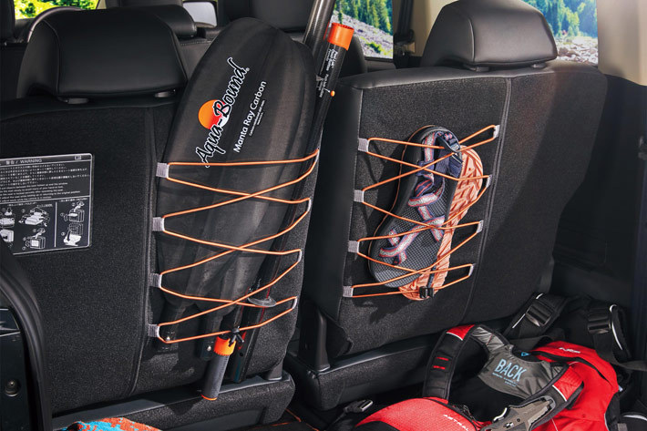アウトドアレジャーシーンで便利な撥水機能付きのシート生地を採用したほか、より使い勝手を向上させる専用ディーラーオプションパッケージを設定した。