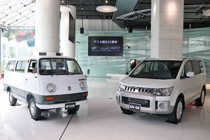 デリカシリーズは、1968年にデリカ トラックを発売してから今年で50周年を迎える。翌69年に発売されたデリカ コーチ(乗用9人乗り)が現在のデリカ D:5に繋がるワゴンの起源となった。79年の2代目デリカ スターワゴン、86年の3代目デリカ スターワゴン、94年の4代目デリカ スペースギアによって、本格的な4WD性能を備えたワンボックス車という独自のポジションとアウトドアレジャーを満喫するためのパートナーというデリカのイメージを確固たるものとし、多くのユーザーに愛用されてきた。