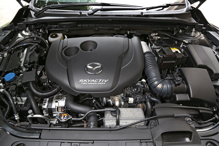 新型アテンザのエンジンラインナップは、2.0Lガソリン/2.5Lガソリン/2.2Lディーゼルの3種類。うち2.5Lガソリンエンジンと2.2Lディーゼルエンジンは新エンジンが搭載される。