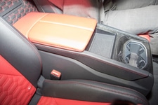 エアベントやドアハンドルなどのエレメント、さらにはカップホルダーやエアバッグモジュールといったアイテムにまで、ランボルギーニのテーマである六角形が室内全体に施されています。