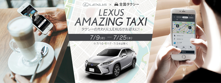 トヨタ東京販売ホールディングスと、日本初・日本最大のタクシー配車アプリ「全国タクシー」を展開するJapanTaxiは、協業プロジェクトとしてLEXUS車両で配車サービスを行う『LEXUS AMAZING TAXI』 を2018年7月9日(月)~7月25日(水)の期間限定で、運賃迎車料金無料で実施する。