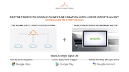 ルノー・日産自動車・三菱自動車とGoogleは、同アライアンスの車両にAndroidのオペレーティングシステム(OS)を搭載し、高度なインフォテインメントやドライバー向けアプリケーションを複数のブランドと車種で展開するため、技術提携を結んだことを2018年9月18日に発表した。
