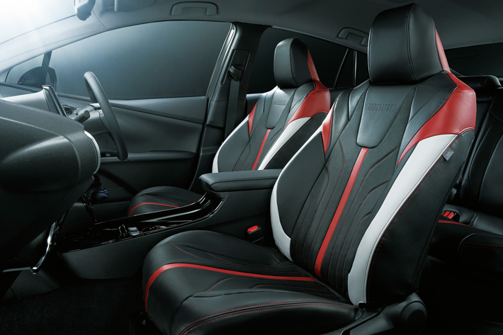 インテリアアイテムとして、ブラックパネルから浮かび上がるような光が先進感溢れるインテリアを演出するブルーのイルミネーション付スカッフプレートや、ブラック基調のカバーに深みのあるレッドのアクセントカラーを施し、エモーショナルな装いを増幅させるシートカバーを初設定するなど、魅力的なカスタマイズアイテムを揃えた。