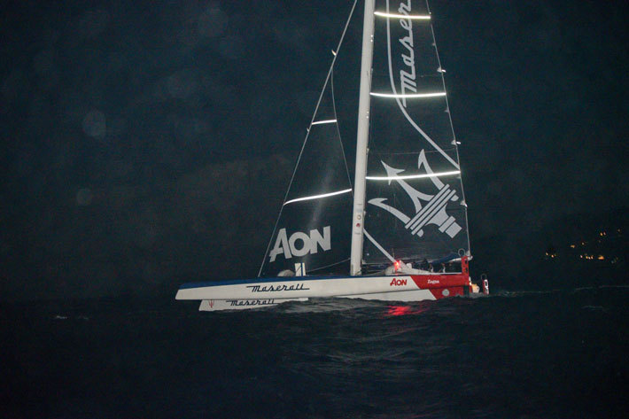 スタートから間もなく、現地時間19時頃、サバ島から数マイルのところで、マセラティ マルチ70号は2時間20分早く帆をあげた。