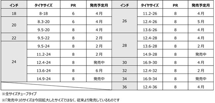発売するのは主に中・小型トラクターのフロントタイヤで使用される「324FarmPRO」の7サイズと水田用ハイラグパターンのリアタイヤ「337DEEP LUG」の15サイズ。