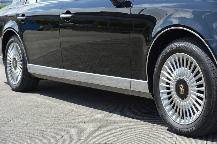 また、センチュリーのユーザーの多くはVIPの方々だ。後部座席から降りるときに、センチュリーのボディが上質な鏡となり、さりげなく身だしなみを確認できる。鏡面仕上げにはセンチュリーならではの心遣いも込められている。