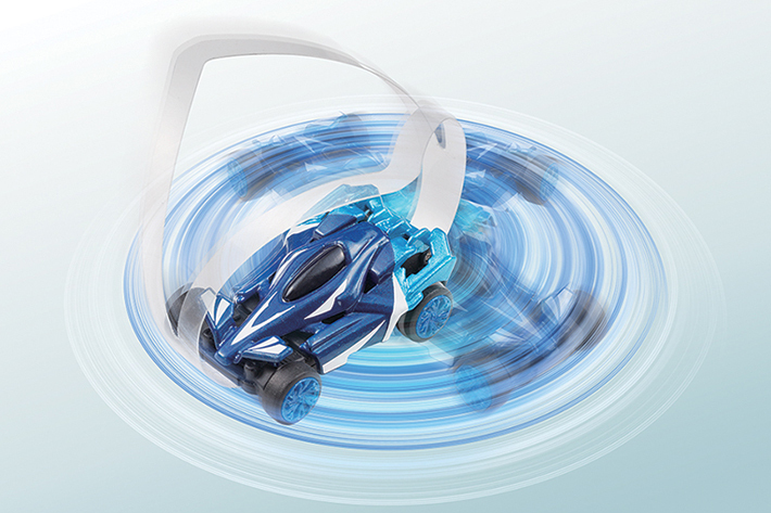 時速25キロのハイスピードと、全長約55mm、重さ約20gの超コンパクトボディを活かしてアクロバティックなアクションやトリックを繰り出すことができる。