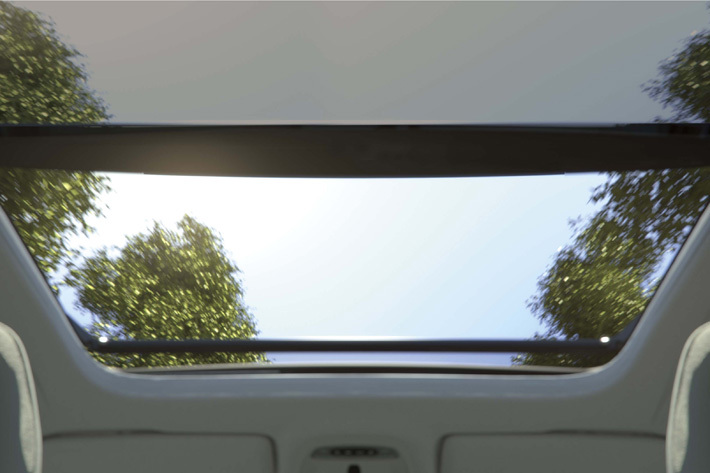 チルトアップ機構付電動パノラマガラスサンルーフは、閉じているときには濃色ガラスによって眩しさを抑え、開放時にはキャビンに明るさと爽快感をもたらす。ガラスサンルーフはリモコンキーの操作で閉じることもできる。