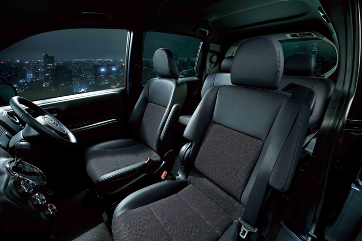 ポルテ特別仕様車F“Raffine”ならびにスペイド特別仕様車F“Noble collection”は、Fグレードをベースに革調シボ付ルーフフィルム、合成皮革とファブリックを組み合わせた専用シートなどを特別装備し上質感を高め、インテリジェントクリアランスソナー「パーキングサポートブレーキ(静止物)」も特別装備した。