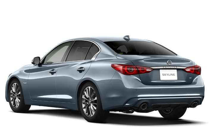 またリアにはスカイラインのアイコンである「丸目4灯リアコンビネーションランプ」を採用し、均一に光るLEDランプにより、先進的でありながらも後続車に一目でスカイラインと分かるデザインとなっている。
