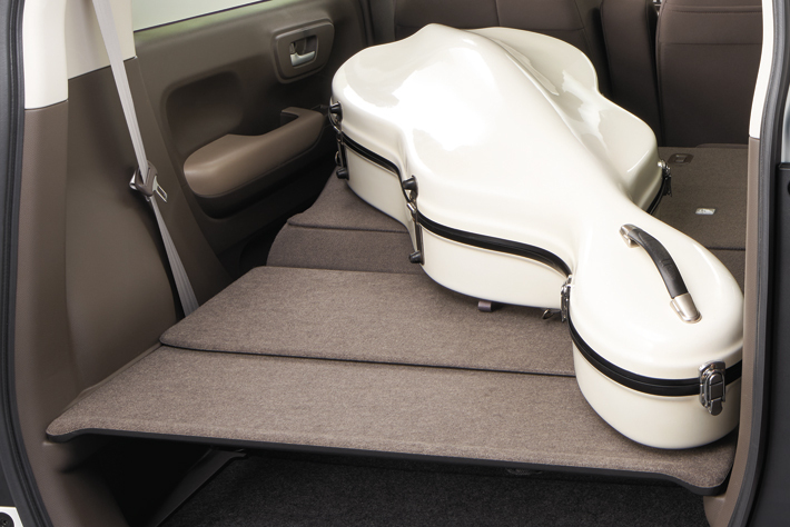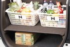 また荷室も重い荷物を少ない負担で積めるよう低床化し、備え付けのボードを使えば積載スペースを上下2段にレイアウト(写真:左)できるため、空間をより有効活用することが可能となった。さらに備え付けのボードを残したままリアシートを倒せば(写真:右)、上段の積載スペースに奥行きが生まれるほか、備え付けのボードをリアシートの背面に収納すれば、高さのある荷物も積むことができる。