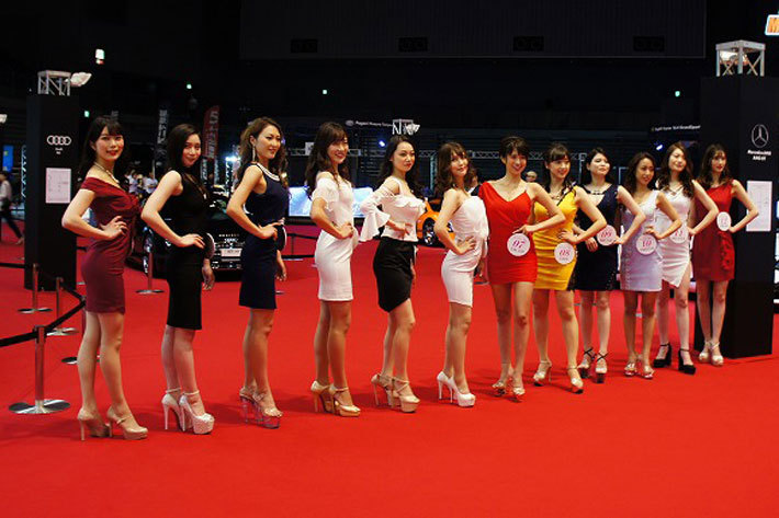今回初開催となる「ミスメガスーパーカーモーターショーコンテスト」のファイナリスト12名は4日間、来場者に自己PR。最終日のグランプリ決定が楽しみだ。