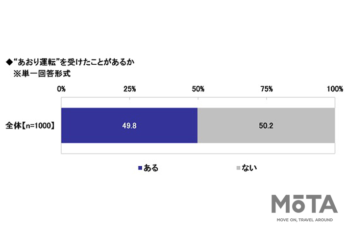 「あおり運転」を受けたことがあるかどうかの問いに49.8%が「ある」と回答。2人に1人があおり運転の被害に遭っていることが明らかになった。