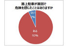 今回のアンケートでは、93%が「路上駐車が原因で危険を感じたことがある」と回答している。