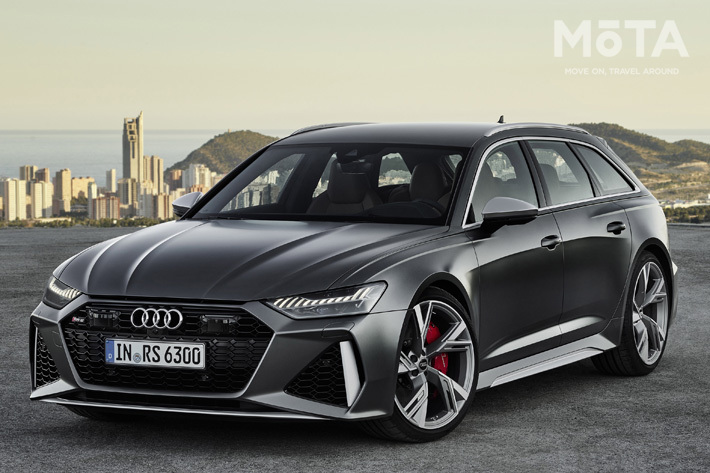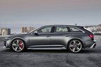 新型RS6 アバントはA6 アバントをベースとしつつも、フロントドア、ルーフ、テールゲートを除き、RS専用のデザインとなっている。ワイドなフェンダーにより全幅が約40mm拡大されているほか、22インチの大径ホイールがインパクトを与えている。