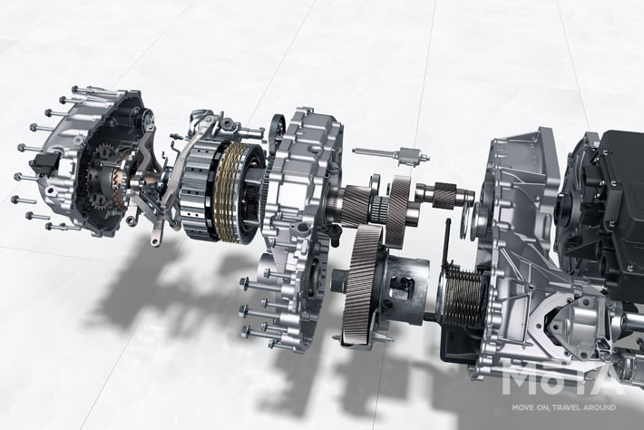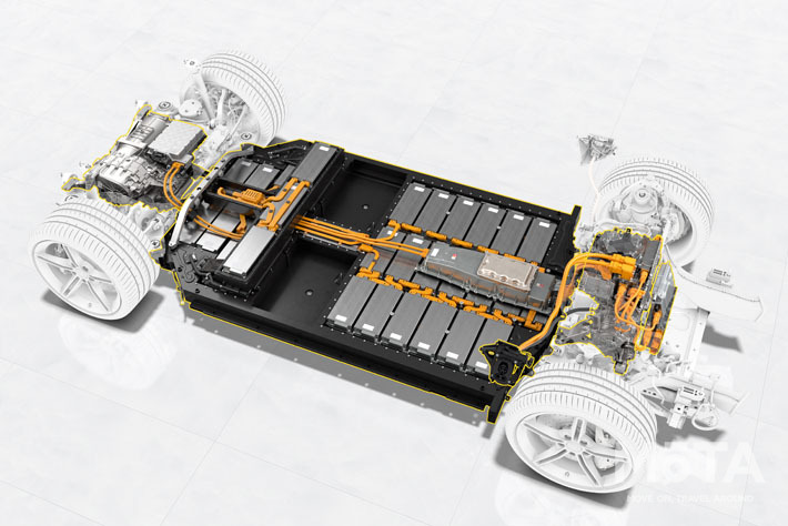 オーバーブースト機能を組み込んだ2基の永久磁石シンクロナスモーターや、後輪を駆動するモーター用として組み込まれた2速リアアクスルミッションなど、EVスポーツとしての高い性能を発揮するための機構が採用されている。