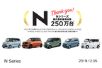 ホンダの軽乗用車「N」シリーズの累計販売台数が、2019年11月末時点で250万台を突破した。2011年12月に第1弾モデル「N-BOX」を発売して以来、96ヵ月目(丸8年)での記録達成となる。