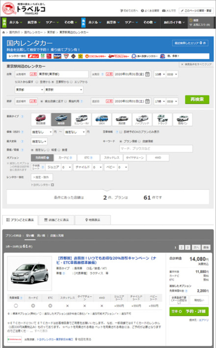 エアトリとトラベルコが連携したことにより、同サイトの取り扱う国内レンタカープランをトラベルコ内で検索・比較することができるようになり、自分で複数のサイトを巡りながら情報を集め、旅行プランを考える必要がなくなるかもしれない。