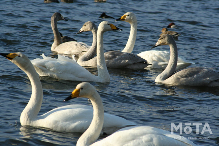 長者原SA店は宮城県大崎市にあり、冬にはヒシクイ、マガン、オオハクチョウなどが飛来するラムサール条約湿地である化女沼(けじょぬま)に隣接している。