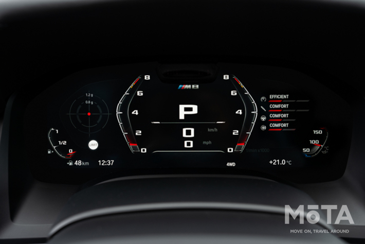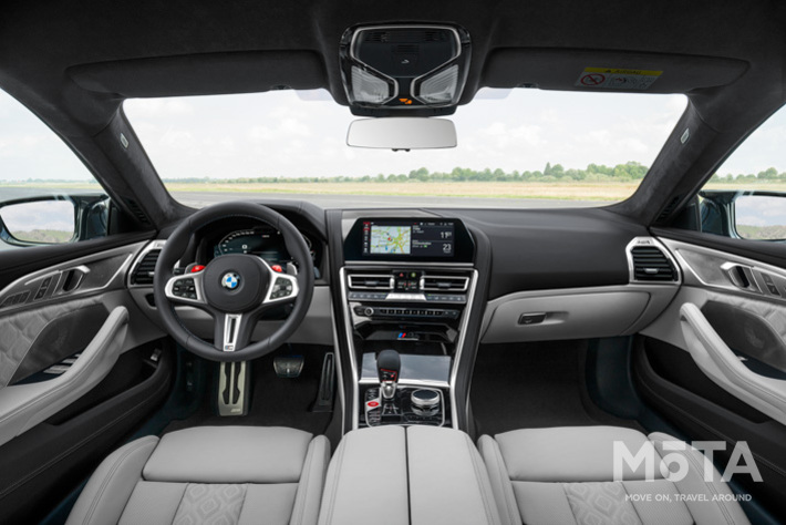 室内には、本モデルから導入されたMのロゴやMモデルカラーのステッチが刻まれた新デザインのセレクターレバーにくわえ、立体的なデザインによりドライバーの姿勢を支えるスポーツシートや、カーボンファイバー製のインテリアトリムを採用している。