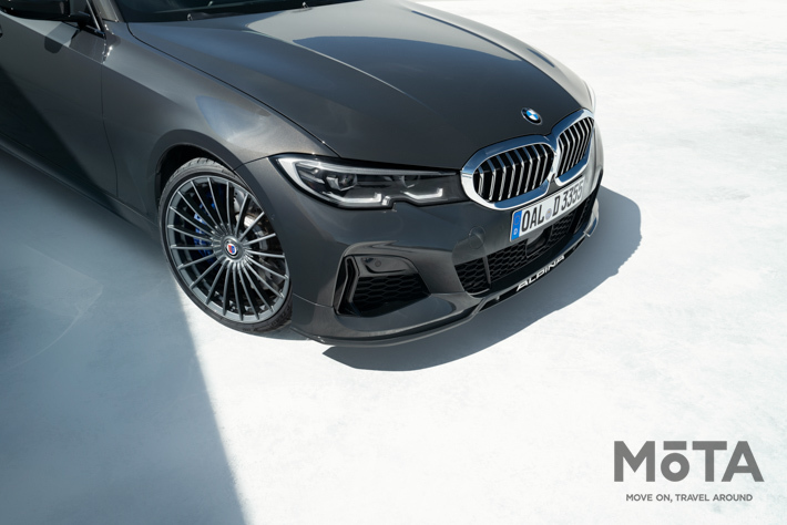 アルピナならではのデザインとエアロダイナミクスエレメントは、BMW 3シリーズの持つダイナミックな外観と機能性とを融合。
