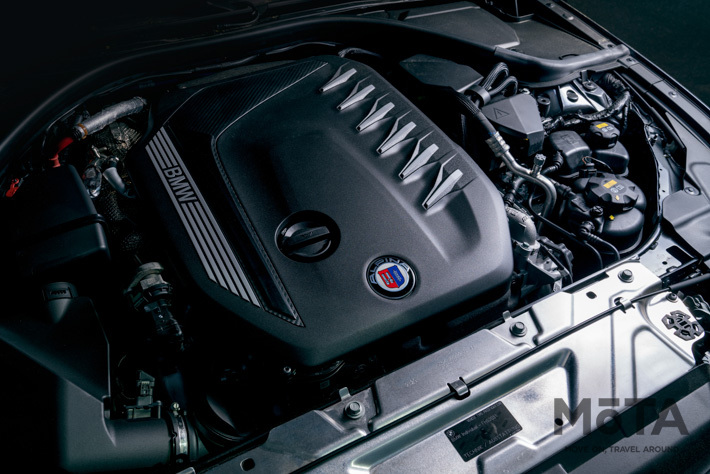 「形態は機能に従う(Form Follows Function)」というアルピナの哲学に従い、車両前方ではエアインテークを最適化して冷却性能を向上させているほか、車両前方と後方のエアロダイナミクスにより揚力を最小限に抑え、高速安定性を最大限に高めた。