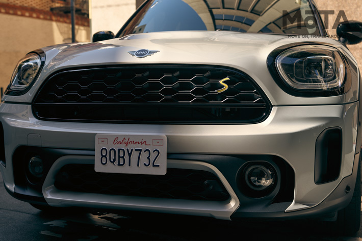 フロントのデザインは、新型ミニ クロスオーバーの力強さを強調。新しい構造のバンパーカバーはボディ同色とし、デザインを一新したラジエターグリルは、ミニ特有の六角形の輪郭を持ち、細身の一体型クローム・フレームで囲まれる。