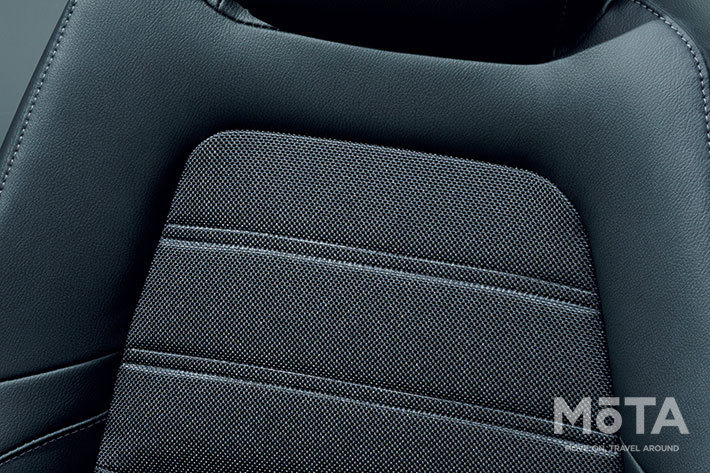 EXグレードでは、ファブリックシートから、ファブリックとプライムスムース・レザーの2素材を組み合わせたコンビシートに変更し、内装の上質感を高めた。