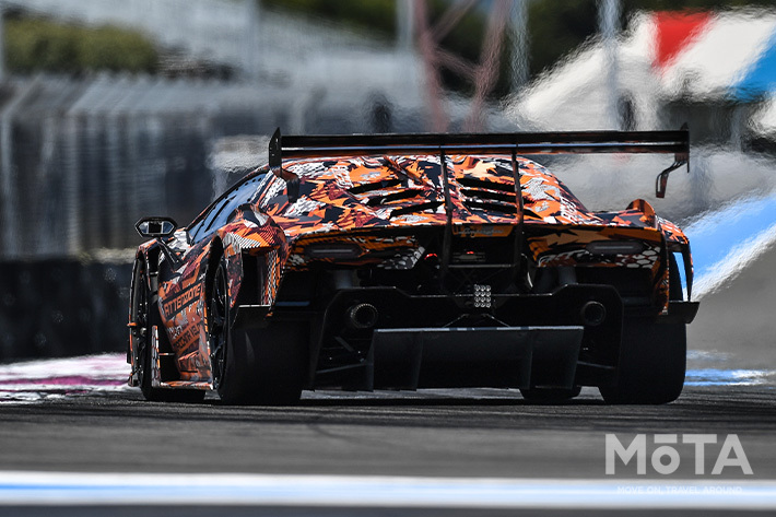 ランボルギーニ SCV12は、ランボルギーニ・スクアドラ・コルセがGTモータースポーツで培った経験を活かし、GT3マシンより高い空力性能とダウンフォースを実現。