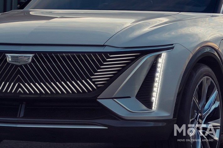 キャデラック初の電動SUVであるリリックは、新世代EVにふさわしい新しいフロントマスクやプロポーション、存在感を表現している。