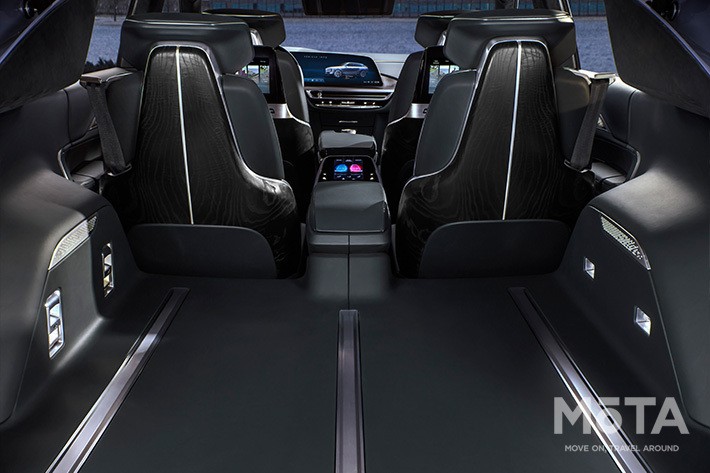 また、バックライト付きスピーカーグリルや隠し収納付き湾曲スクリーン、エクステリアと同じく巧妙に演出された照明機能など、繊細ながらこだわりのあるディテールで満たされている。