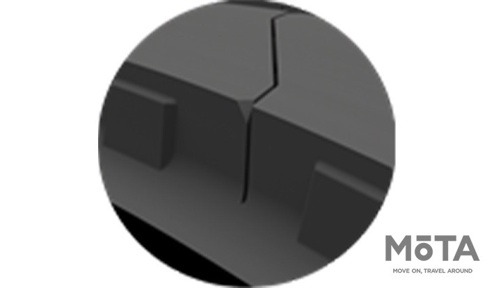 U字に切られたグルーブは摩耗末期でも適正なボイドレイシオを確保確保。優れた排水性能により雨天走行時の安全性を追求。