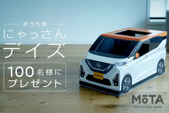 ねこ用日産軽自動車 “おうち用にゃっさんデイズ”1個とオリジナル猫バンバンステッカー1枚をセットでプレゼント。