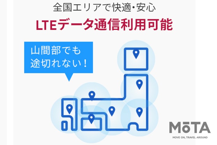 山間部も途切れること無く、全国のエリアのどこでもデータ通信利用可能で、通信料は定額なのが魅力的。