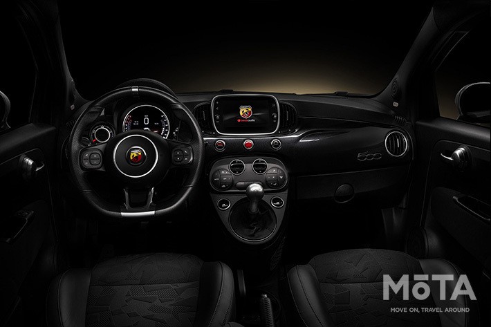 インテリアには「Scorpioneoro」の刺繍およびスコーピオンロゴをモチーフとしたカモフラージュ柄インサートを備えた専用スポーツシートをはじめ、ブラック仕上げの専用インストルメントパネルやセンターコンソールの限定車ロゴプレートを採用。