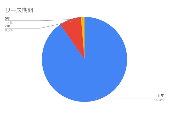 MOTAカーリースでは、最長11年のリースプランが選択できるなど、月々の支払いを低価格に抑えながら車を所有することが可能となっている。そのため、90.4%のユーザーが最長の11年で申込を行っている。