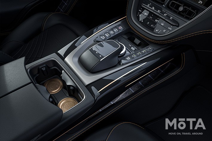 またサイドストレーキのインレイには、ウイスキー蒸留器に使用されている銅製のストリップをアクセントとして採用。オプションのブラック・ブレーキ・キャリパーは艶消し仕上げのホイールに繊細な印象を与え、アストンマーティンウイング・エンブレムとスクリプト、「Q by Aston Martin」のフェンダーエンブレムがエクステリア全体のエレガントな印象を演出している。