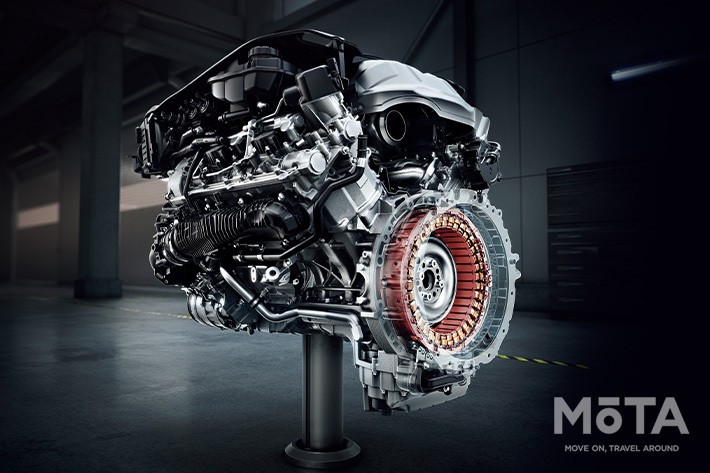 この電気モーターと「48V電気システム」により、従来のハイブリッド車のような回生ブレーキによる発電を行い、約1kWhの容量のリチウムイオンバッテリーに充電。スターターが高出力な電気モーターとなることで、エンジン始動時の振動を抑え、エンジンスタートおよびアイドリングストップの際の再スタートの快適性が向上した。
