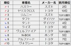 2020年11月MOTAカーリース 申込数ランキングTOP10