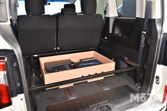 デリカの特長である悪路走破性を犠牲にすること無く、就寝機能、リチウムバッテリーを搭載することで、市街地、都市圏問わず機動性に長けた使い方が可能。運転席・助手席に回転シートを装備させることで、打合せもできるモバイルオフィスカーとしても活用できる。