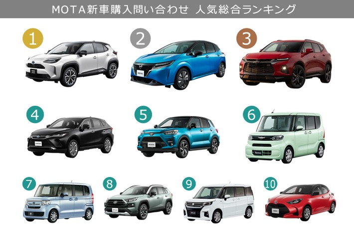 いま新車見積もりが多い車種はどれ? MOTA新車購入問い合わせ人気ランキング【2020年12月版】