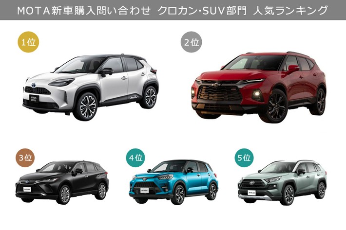2020年12月MOTA新車問い合わせ件数ランキングTOP5(SUV部門)