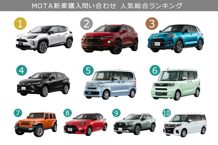 2021年1月MOTA新車問い合わせ件数ランキングTOP10|トヨタ ヤリスクロスが見積もり数の総合ランキングで2ヶ月連続1位に