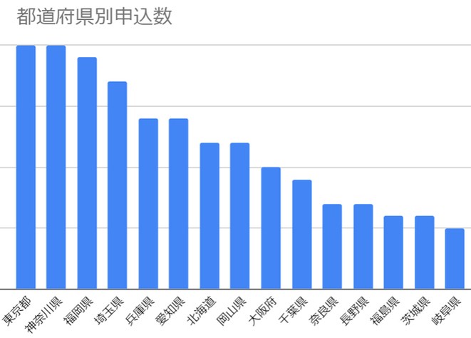 都道府県別申込数では、先月9位だった東京都が1位となった。