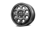どんなボディカラーにもマッチするマットガンメタリックと、汎用性の高いサイズによって幅広いコンパクトカーへの装着が可能。足元をワイルドに演出してくれるのだ。