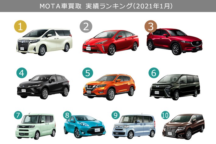 2021年1月MOTA車買取 買取査定価格ランキングTOP10