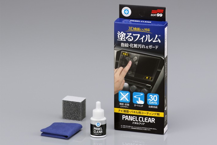 そのため、今回ソフト99コーポーレーションは、“快適な車内空間を実現する”がコンセプトの「ROOMPIA(ルームピア)」シリーズから、車内パネル用コーティング剤「ルームピア パネルクリア」を発売することとなった。カーナビのタッチパネルやルームミラー・光沢樹脂パーツに施工することで指紋や皮脂汚れの付着を軽減し審美性を確保するフッ素タイプの商品となっている。