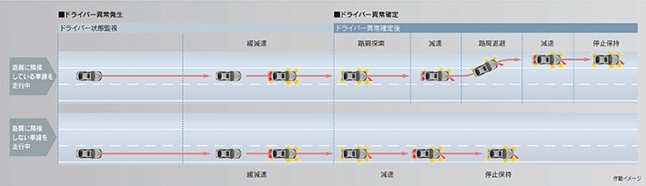 なおドライバーは常に運転状況を監視する必要がある。車両にもドライバーモニターカメラが設置され、運転者の視線などを監視し、必要に応じて警告などを行う仕組みも有する。