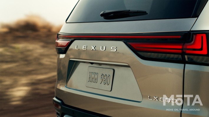レクサスでは、2021年10月14日(木)の発表に先立ってデザインを一部公開した。リヤデザインの一部のみだが、レクサスロゴではなくスタイリッシュな「LEXUS」の文字とLX600のエンブレムが印象的だ。
