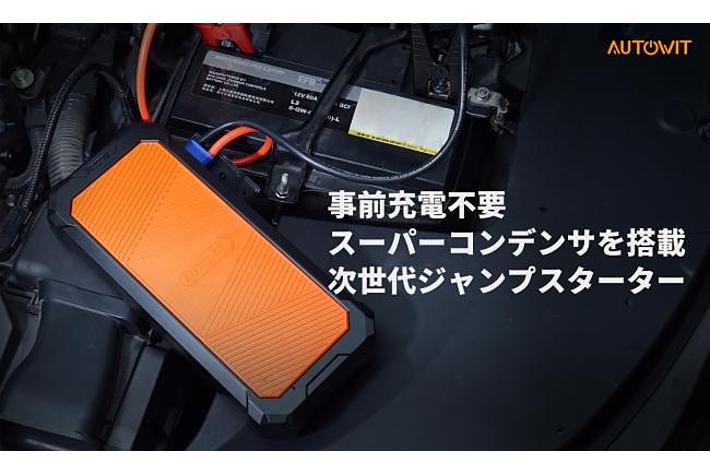 「Autowit Super Cap2」ジャンプスターターは市販のリチウムイオン電池式ジャンプスターターと異なり、スーパーコンデンサが搭載されているため、事前に充電していなくて弱ったバッテリーから短時間で電気を蓄え、それを瞬時に放電することでエンジンを始動させます。